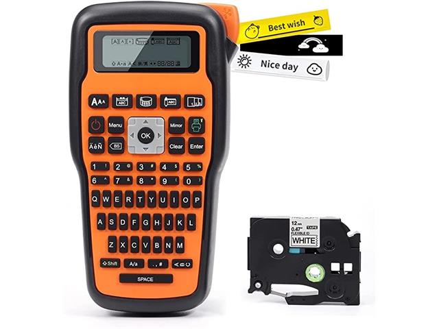 1-pack 12mm AZe-FX231 label tape: E1000 labeller will come with 1 pack AZe-FX231 label tape black print on white tape, strong stickiness and resistance of water, UV, oil, fade, abrasion, etc.. Perfect for indoor and outdoor application.