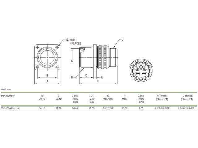 Circular Connector MIL-DTL-5015 Style Screw Lock Square. Flange Panel Receptacle with Rear Thread 17 Pole #16 Contacts. Female Solder. 13A 500VAC/700VDC (MS3100A20-29S)(97-3100A-20-29S)