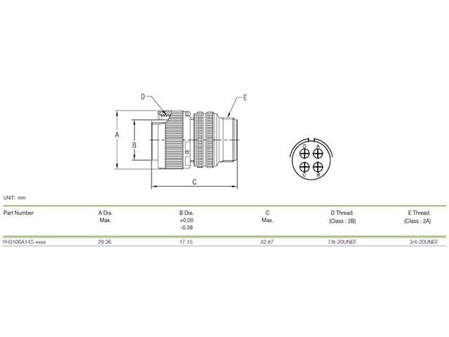 Circular Connector MIL-DTL-5015 Style Screw Lock Cable End Plug Optional Cable Clamp 4 Poles #16 Contacts Male Solder 13A 500VAC/700VDC (MS3106A14S-2P)(97-3106A-14S-2P)