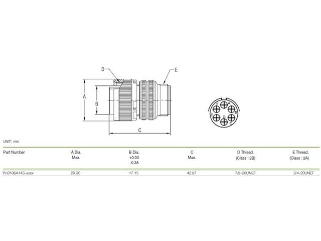 | Type | Screw Lock | Cable End Plug | Optional Cable Clamp | 6 Poles |