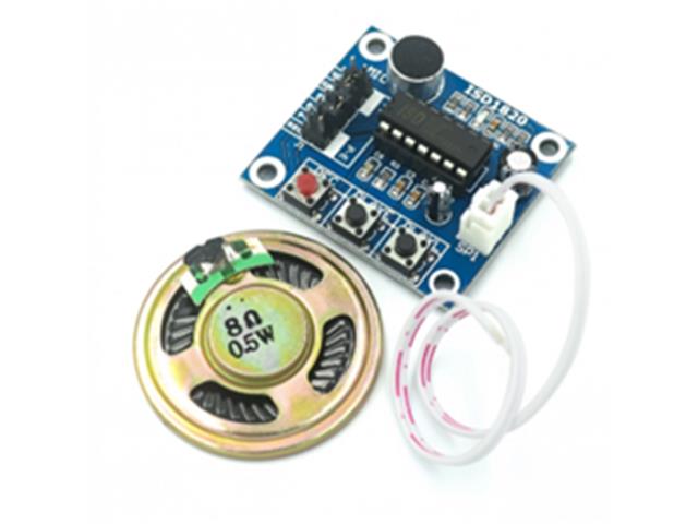 ISD1820 is a small Voice Recorder and Playback module that can do the multi-segment recording. The user can achieve a high quality of recording (for 8 to 20secs) for each application with the adjustment of the on-board resistor. This Voice Recorder/Playback module is designed with embedded-Flash memory, which can hold data for up to 100 years and erase/record the life cycle up to 100,000.