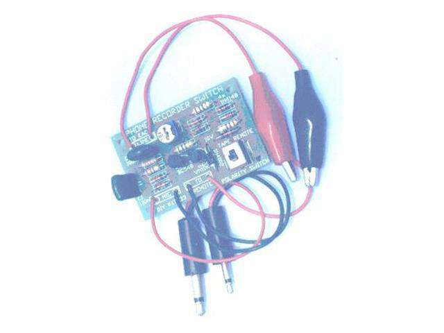 This kit uses a FET to switch on a tape recorder when the phone is picked up. It will work with low voltage tape recorders as low as 1.5V. It requires the REMOTE & MIC jacks of the tape recorder to be available. Plugs are provided