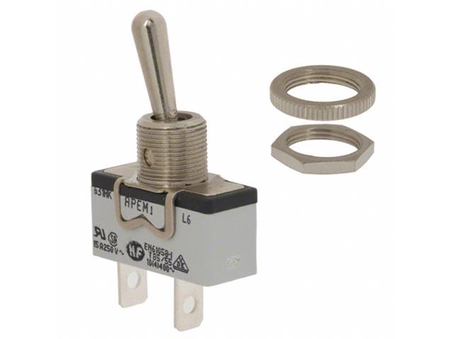 Apem Hi Quality/ Reliability Metal Lever Toggle Switch Single SPST Pole On -Off. Spade/Solder Terminal. 15A/250VAC(12VDC) 10A/24VDC VDE Approved