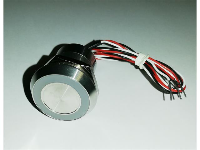 Vandal Resistant Capacitive Switch 22mm Latching. Flat Red Output Ring LED 16,5mm -1 n/o 24V-200mA max. NPN with 50cm Flylead - IP68/69K- Stainless. Steel (Anti Vandal)