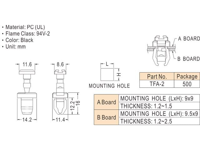 Snap Latch to Join 2 Boards with Thickness 1,2-1,5mm