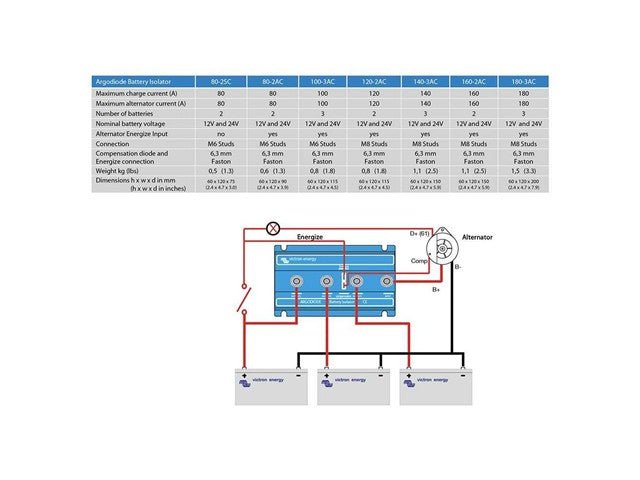 Enhance your vehicle's electrical system with the VICT Battery Isolator 80-2AC. Designed for dual battery setups, this reliable isolator ensures optimal charging and power management, maximizing performance and extending battery life. With a 80A capacity and easy M6 connections, it's perfect for both 12V and 24V systems. Upgrade your power management today for peace of mind on every journey!