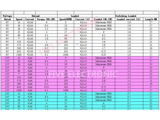 | 22 | JGA25-370 | 17 | 12 V | 1200 mA | >24 kg·cm | 1:500 Gearmoto |