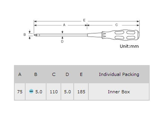 - Pro-Soft S/D (-5.0x75mm) for Versatile Use A precision screwdriver with a 5.0mm tip and 75mm shaft, perfect for electronics, machinery, and general repair tasks.
