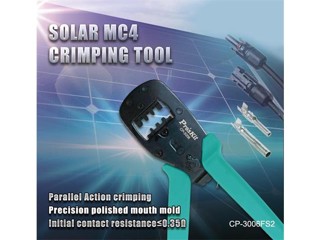 Pro’sKit PK-2061 Solar MC3 & MC4 Crimping Tool Kit is a complete tool kit for solar panels set up operations, comply with tensile strength test, features accurate stripping, precision crimping, and making the installation jobs more smart and efficient. Pro’sKit PK-2061 contains Prosoft screwdrivers, Universal solar cable stripper, Parallel action crimping tool, the MC4 & MC4 PLUS open-end spanner and unlocking tool and Heavy duty forged cable cutter. It comes with a durable zippered carrying bag which constructed on water repellent and provides easy carrying and storage.