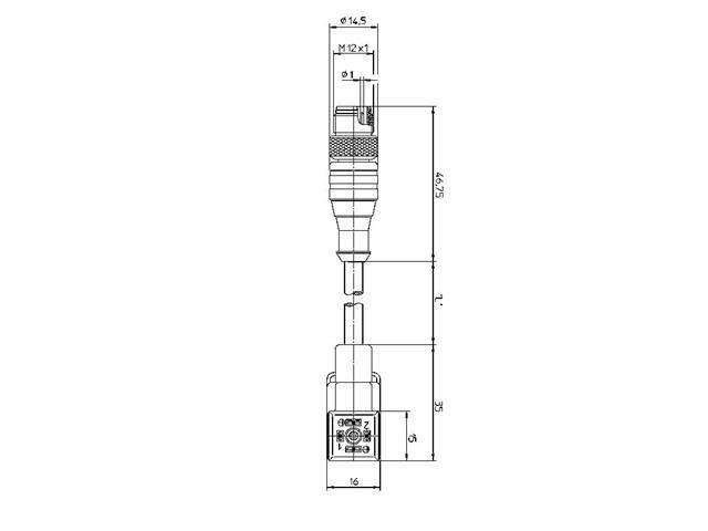 Cordset Valve Connector Female DIN43650-C (8MM) 2P+E W/Ylw-Grn Function Ind. LED - M12 A COD Male Str. 3 Pole - Double End 5M PUR Cable IP67 (46914)