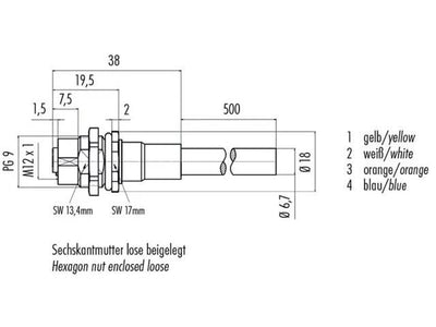 Circular Connector M12 D COD Female 4P Screw Lock M16 X 1,5 Rear Panel Entry Front Mount with 500mm Shield Profinet Cable IP67