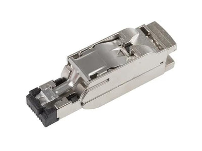 Transfer data with efficiency and security in industrial environments using this Siemens male Ethernet connector. The RJ45 (Registered Jack) plug features FastConnect technology to minimize installation errors and ensure reliable transmission. It's also simple to install thanks to its sophisticated quick-assembly system. Exceptional EMC (electromagnetic compatibility) shielding minimizes interference from nearby electrical components for a clear and precise signal, while rugged metal housing ensures a long service life and durability, so it can be reused up to 10 times. This connector is compatible with 4-core industrial Ethernet cables in applications with speeds of up to 100Mbits (megabits) and achieves direct device connection of up to 100m without the need for patching technology.