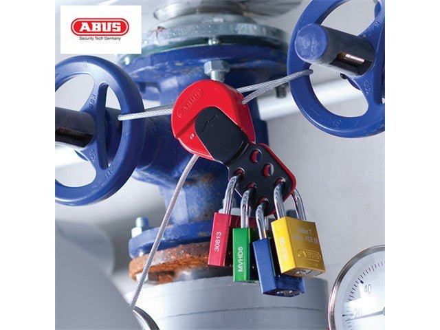 Secure your workspace with the ABUS UNIV Cable Lockout C506. This universal lockout device features a 2m cable that accommodates up to 6 padlocks, ensuring safety during maintenance. With its intuitive design and patented grip mechanism, it offers reliable fixation and easy retightening, making it an essential tool for effective energy source management. Keep your team safe with this durable, high-quality lockout solution.