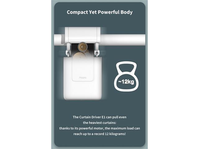 Aqara Smart Curtain Driver E1 (ROD Version), Requires: AQARA Zigbee 3.0 HUB, Built-in Light Sensor, Max Load of 12 kg, Rod Version Supports U-Rails & I-Rails, USB-C for Charging, Rated Rotor Speed:100 r/min, Rated Torque:0.2 Nm