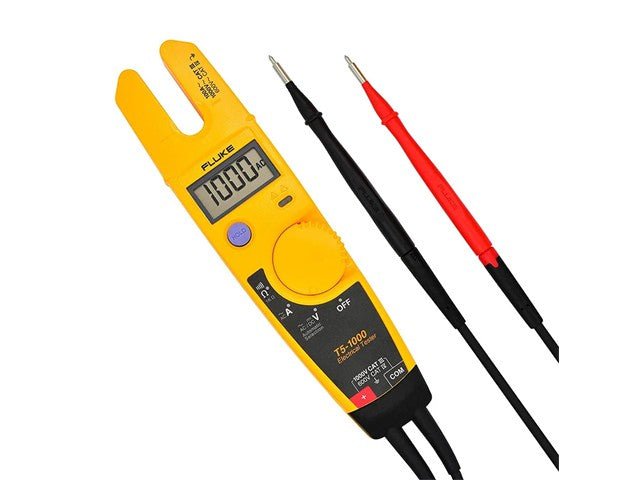 Measure current up to 100 A without breaking the circuit with OpenJaw™ design. The T5-1000 Electrical Tester is a versatile troubleshooting tool to carry to every job site. Use it to check voltage, continuity, and current–all with one compact tool.