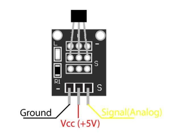 Below is the pin configuration of the HKD 49E HALL SENSOR MODULE magnetic sensor. This pin configuration can be used when connecting the module to any microcontroller.