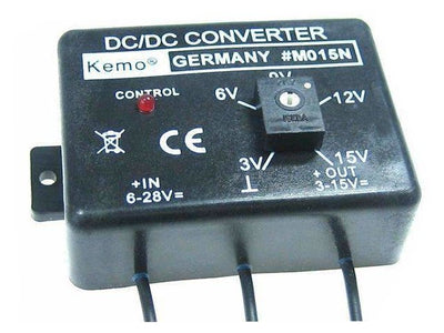 Input: 6 ~ 28 V/DC output: 3 ~ 15 VDC. The input voltage must be at least 3 V higher than the adjusted output voltage. The adjusted output voltage is stabilized or short circuit-proof. For operation of appliances with lower voltages at a 12 V or 24 V car battery or power supplies.