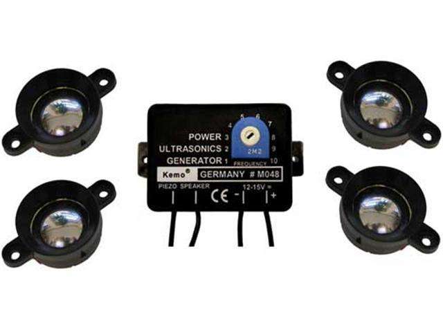 Producing aggressive ultrasonic sounds not audible to humans are found by martens extremely annoying. To be mounted in the engine compartment of motor vehicles. Ultrasonic marten repellent for use in cars, houses and Flats. Produces enormously loud and pulsating ultrasonic sounds. Angle of radiation with a special spherical surface tweeter with about 140 degrees, max. approx. 100 dB +/- 20 %.