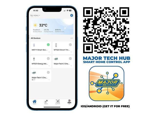 Smart App Compatibility: Easily access advanced features by downloading the free “Major Tech Hub” Smart App.
