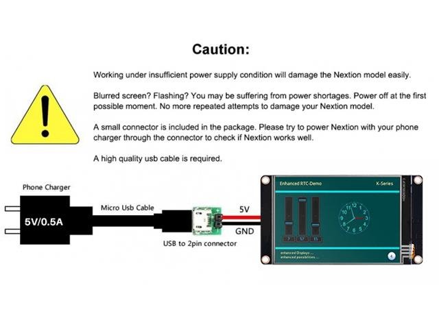 | SD card socket | Yes (FAT32 format), support maximum 32G Micro SD Card * microSD card socket is exclusively used to upgrade Nextion firmware /HMI design |