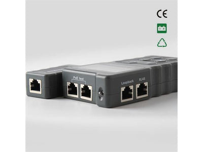 POE Tester. AF/AT STandards, Identifies Supply Voltage, Tests DC Power Consumption of Appliances, Tests Power Supply Polarity, and Tests Crossover Mode OF Non-Standard POE Devices. Loop Back Test Function. Power 3*AAA Batteries -Not Included