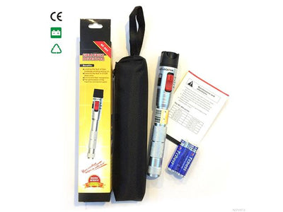 NF-904 Visual Fault Locator uses the DFB-LD as the emitting component . Driven by constrant current source , the indicator can emit stable red laser . The product can be used to inspect fiber failure when they connect with optical interface and be inserted into single mode or multi mode optical fiber . It is indispensable tool in fiber project constructing , fiber net-work maintaining , optical component manufacture and research .