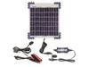 INCLUDED: Weatherproof battery lead, standard battery clip set & 10W solar panel
