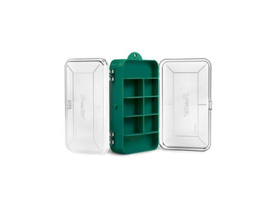 The Pro'sKit 103-132C is a utility component storage box designed for organizing small electronic components and other items. It is made of polypropylene and comes in a green color. The box measures 165mm in length, 95mm in width, and 45mm in height. It features adjustable compartment trays with divider slots, allowing customization to suit various storage needs.