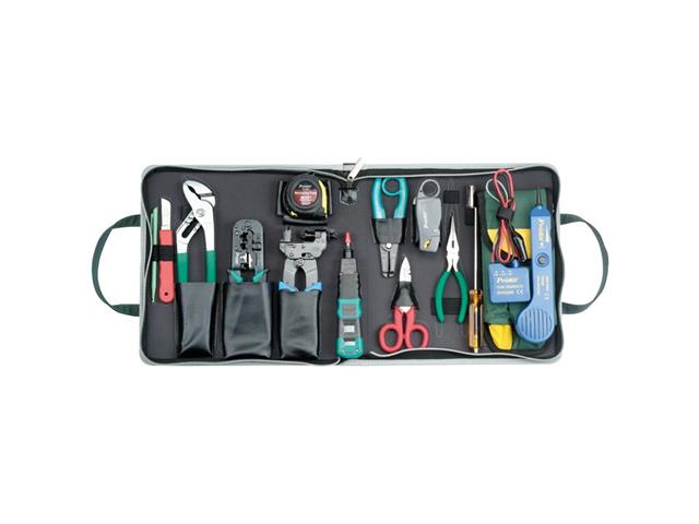 The Pro'sKit PK-2092 is a comprehensive Pro Installer Kit tailored for professionals involved in the installation and diagnostics of computer and telecommunication networks. This kit encompasses a wide array of tools essential for various tasks, all organized within a robust tool bag for easy transport and organization.