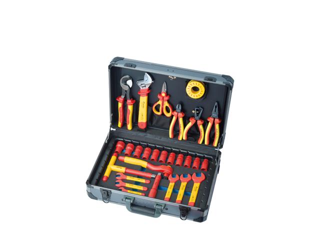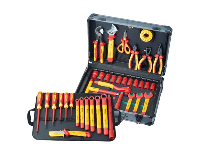 Tool kits equipped with a range of 41pcs 1000V insulated single open end wrenches, single box end wrenches, adjustable wrenches, screwdrivers, knife, pliers and cutters, T handle, 1/2” sockets and type in a durable aluminum frame tool case. Ideal for power plant, HAVC, automotive, military, aircraft field applications and more.