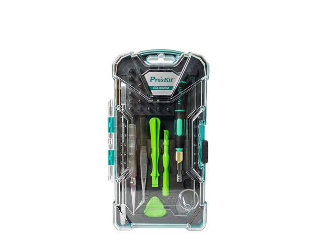 The Pro'sKit SD-9326M is a comprehensive 40-piece electronic tool kit designed for the disassembly and repair of various consumer electronic devices, including smartphones, game consoles, and notebooks. This portable kit is particularly suitable for servicing Apple products such as iPhones and MacBooks.