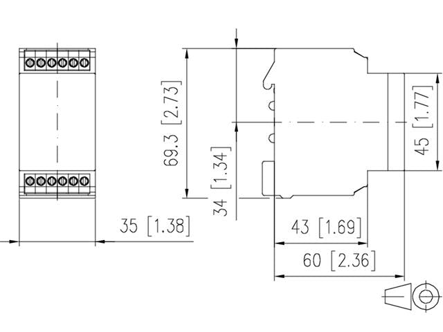 The timer relay is used for pulse prolongation. When the control contact is closed min. 5 ms, the relay is activated and releases after the adjusted pulse time has lapsed. Further control pulses during the pulse time do not have any effect.