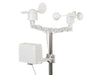The rain gauge is a self-emptying bucket-type rain gauge which activates a momentary button closure for each 0.011" of rain that are collected. The anemometer (wind speed meter) encodes the wind speed by simply closing a switch which each rotation. A wind speed of 1.492 MPH produces a switch closure once per second. Finally, the wind vane reports wind direction as a voltage which is produced by the combination of resistors inside the sensor. The vane’s magnet could potentially close two switches at once, allowing up to 16 different positions to be indicated, but we have found that 8 positions are more realistic.