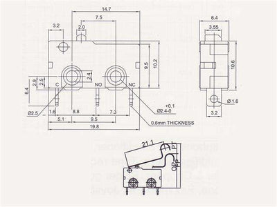 Sub-Miniature Micro Switch • Form : 1C-SPDT(CO) • 5A-250VAC • Solder-Lug • Higher-Curved-Lever Actuator