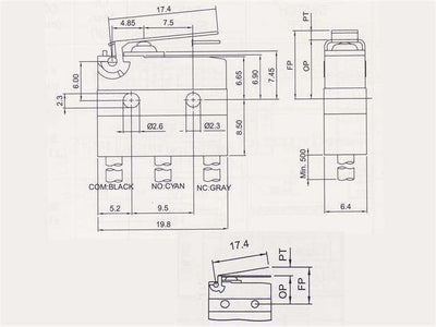 Sub-Miniature Sealed Micro Switch • Form : 1C-SPDT(CO) • 5A-250VAC • 90-Deg-Leads • Standard-Lever Actuatorl