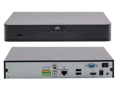 Uniview NVR 8CH, Bandwith:60Mbps, P2P, UPnP, NTP, DHCP, PPPoE, HDMI/VGA O/P, Rec Res:8MP/6MP/5MP/4MP/3MP/1080p/960p/720p/D1/2CIF/CIF,1 Bay (Max 8TB each Disk), 3xUSB2.0,1xRJ45, PSU:12VDC, H2.64/5, 260×240×44mm, 1.12 Kg