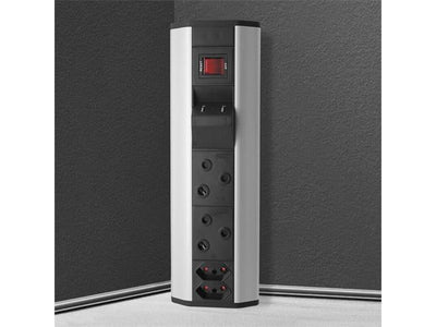 Veti Corner Mount Power Tower 3500W, 2xRSA V-Slim Sockets, 2x16A RSA Sockets, 2xUSB Outlets (2.1A O/P), 1xThermal Overload Switch, 1.6m Standard SA Plug Extention, Aluminium Housing, Power Rating:16A 250VAC, 361x99.5x51.7mm