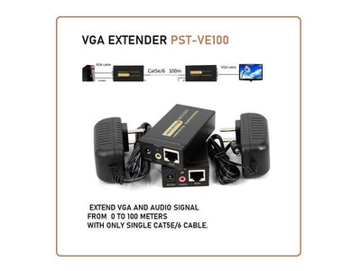 VGA Extender with Audio 100m, Over Single CAT 5E / CAT 6E Ethernet Cable. No Drivers Required, Support VGA, SVGA, XGA, UXGA