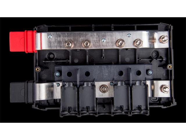 A Modular DC bus bar, the Victron Lynx Power In is used to connect batteries to the Lynx DC distribution system. The Victron Lynx Power In module is used to connect batteries via an external fuse. It can be useful if you have multiple parallel strings. Due to the extremely high short circuit current potential of most battery banks, it is suggested to use an external fuse system with an appropriate fault current interruption rating (such as an NH HRC).