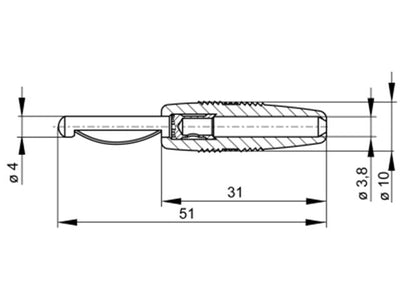 Fully mating connector, shatter-proof, flexible insulated sleeve. The tapering sleeve end also serves as kinking protection for the lead. Solder connection up to maximum cable cross-section of 2.5 mm². Nickel-plated brass contact material.